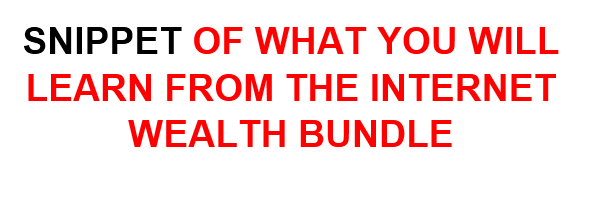Inside the ''INTERNET WEALTH BUNDLE'', Here are the 4 STRATEGIC courses with the right information to change your financial destiny. The collection cover 4 CRITICAL areas anyone looking to make serious money on the internet must master.